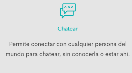 Permite conectar con personas del mundo para chatear, sin conocerla o estar cerca.